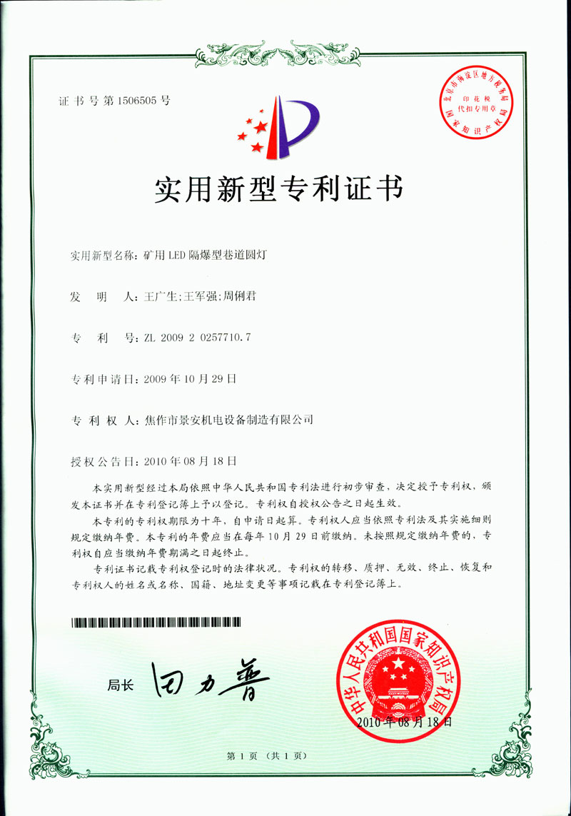 焦作景安公司始終堅持“以科技為先導,以市場為導向”的發(fā)展戰(zhàn)略,不斷進行新產(chǎn)品的研制和開發(fā),在國家“六五”到“九五”期間,承擔和參與了國家多項科技攻關項目。并被中國電器工業(yè)協(xié)會評定為“質(zhì)量可信產(chǎn)品”。特別是在礦用防爆燈領域,礦用隔爆型半導體(LED)照明燈具,2008年列入國家火炬計劃,獲2009年河南省工業(yè)和信息化廳的科技成果二等獎,并擁有多項國家專利。 |